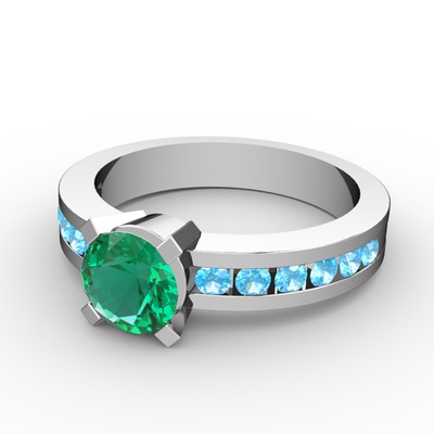 Yeşil kuvars ve akuamarin 925 ayar gümüş yüzük