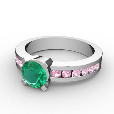 Yeşil kuvars ve pembe kuvars 8 ayar beyaz altın yüzük
