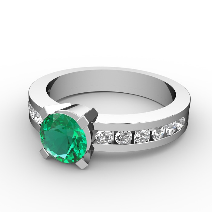 Yeşil kuvars ve pırlanta 18 ayar beyaz altın yüzük (0.432 karat)