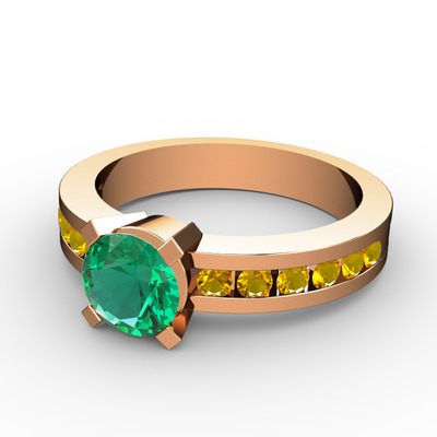 Yeşil kuvars ve sitrin 14 ayar rose altın yüzük