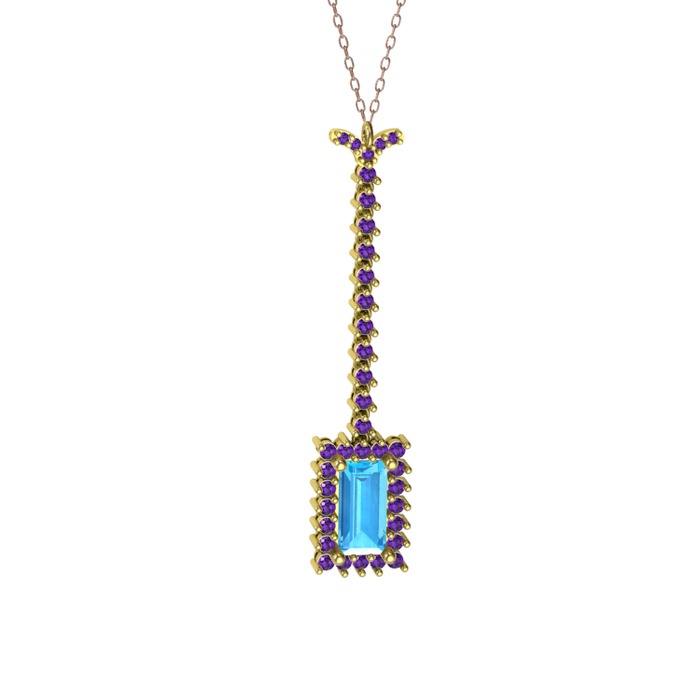 Akuamarin ve ametist 8 ayar altın kolye (40 cm gümüş rolo zincir)