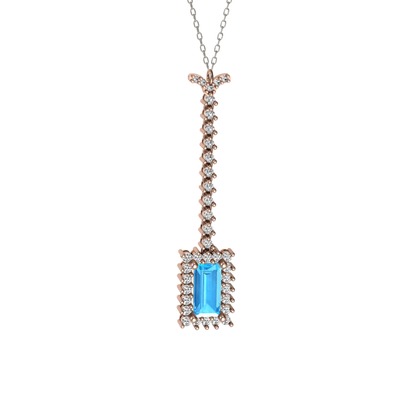 Akuamarin ve beyaz zirkon 14 ayar rose altın kolye (40 cm beyaz altın rolo zincir)
