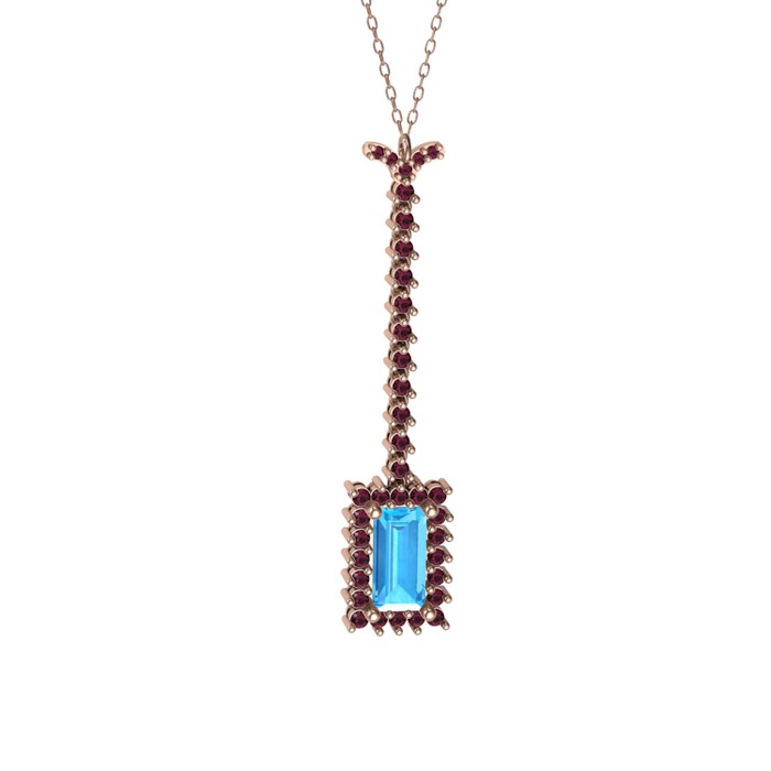 Akuamarin ve kök yakut 925 ayar rose altın kaplama gümüş kolye (40 cm rose altın rolo zincir)