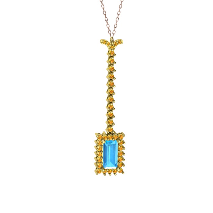 Akuamarin ve sitrin 925 ayar altın kaplama gümüş kolye (40 cm rose altın rolo zincir)