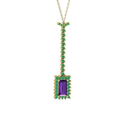 Ametist ve kök zümrüt 8 ayar altın kolye (40 cm altın rolo zincir)