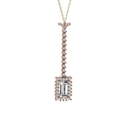 Beyaz zirkon 14 ayar rose altın kolye (40 cm gümüş rolo zincir)
