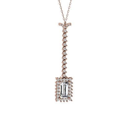 Beyaz zirkon 14 ayar rose altın kolye (40 cm gümüş rolo zincir)