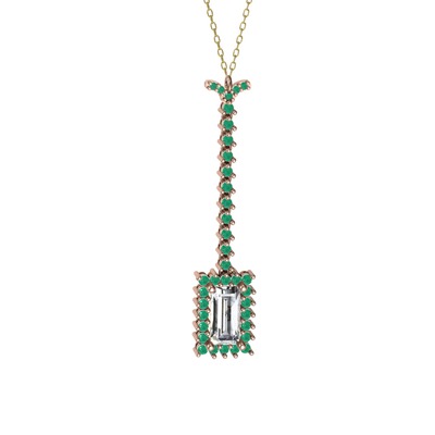 Beyaz zirkon ve kök zümrüt 925 ayar rose altın kaplama gümüş kolye (40 cm altın rolo zincir)