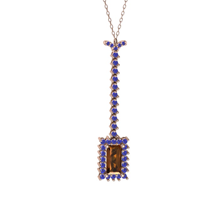 Dumanlı kuvars ve lab safir 18 ayar rose altın kolye (40 cm rose altın rolo zincir)