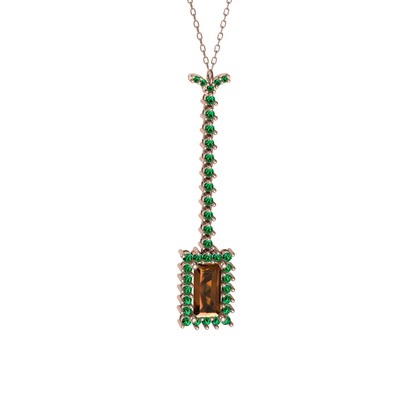 Dumanlı kuvars ve yeşil kuvars 925 ayar rose altın kaplama gümüş kolye (40 cm rose altın rolo zincir)