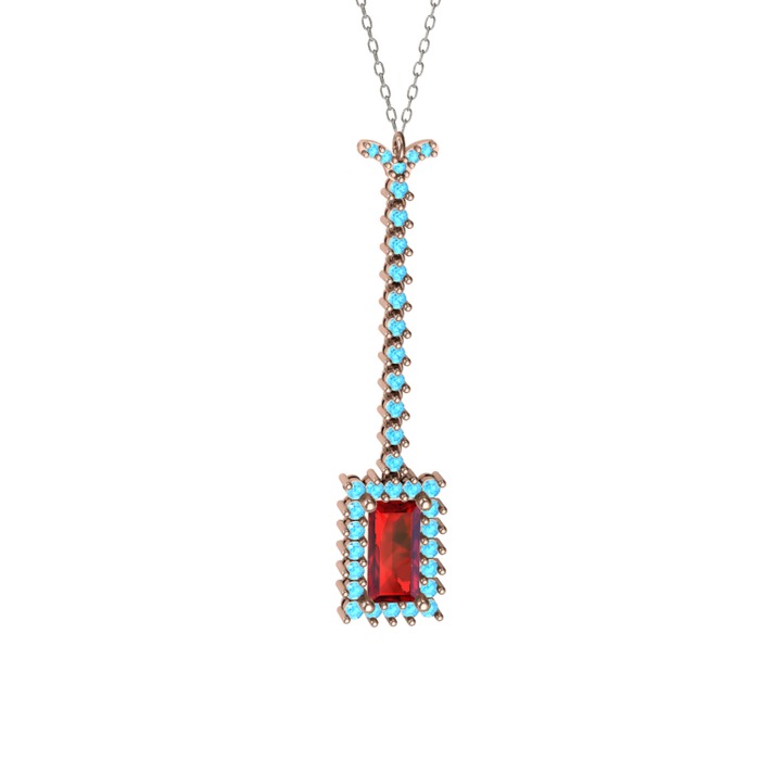 Garnet ve akuamarin 14 ayar rose altın kolye (40 cm gümüş rolo zincir)