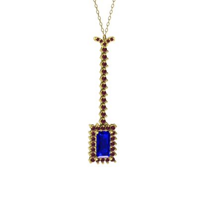 Lab safir ve kök yakut 18 ayar altın kolye (40 cm gümüş rolo zincir)