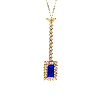 Lab safir ve pembe kuvars 14 ayar altın kolye (40 cm altın rolo zincir)