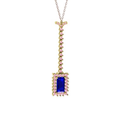 Lab safir ve pembe kuvars 8 ayar altın kolye (40 cm gümüş rolo zincir)
