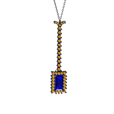 Lab safir ve sitrin 925 ayar siyah rodyum kaplama gümüş kolye (40 cm gümüş rolo zincir)