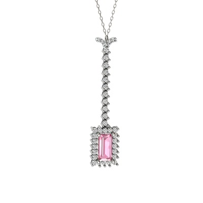 Pembe kuvars ve beyaz zirkon 925 ayar gümüş kolye (40 cm gümüş rolo zincir)