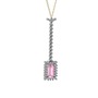 Pembe kuvars ve pırlanta 925 ayar gümüş kolye (0.62 karat, 40 cm altın rolo zincir)