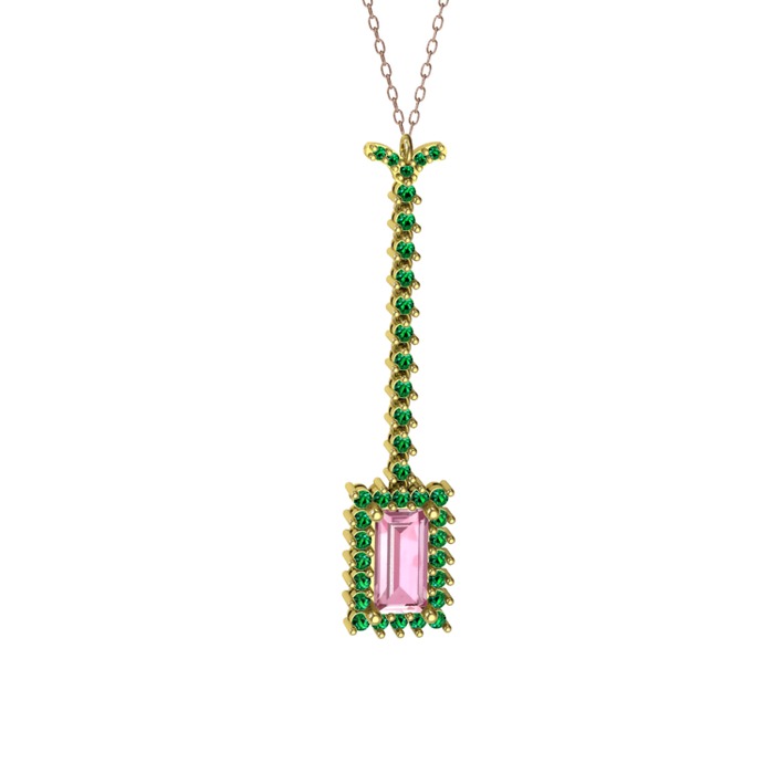 Pembe kuvars ve yeşil kuvars 925 ayar altın kaplama gümüş kolye (40 cm rose altın rolo zincir)