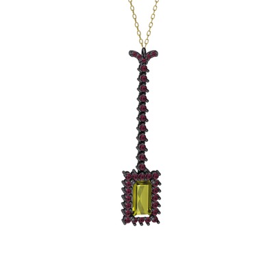 Peridot ve kök yakut 925 ayar siyah rodyum kaplama gümüş kolye (40 cm gümüş rolo zincir)