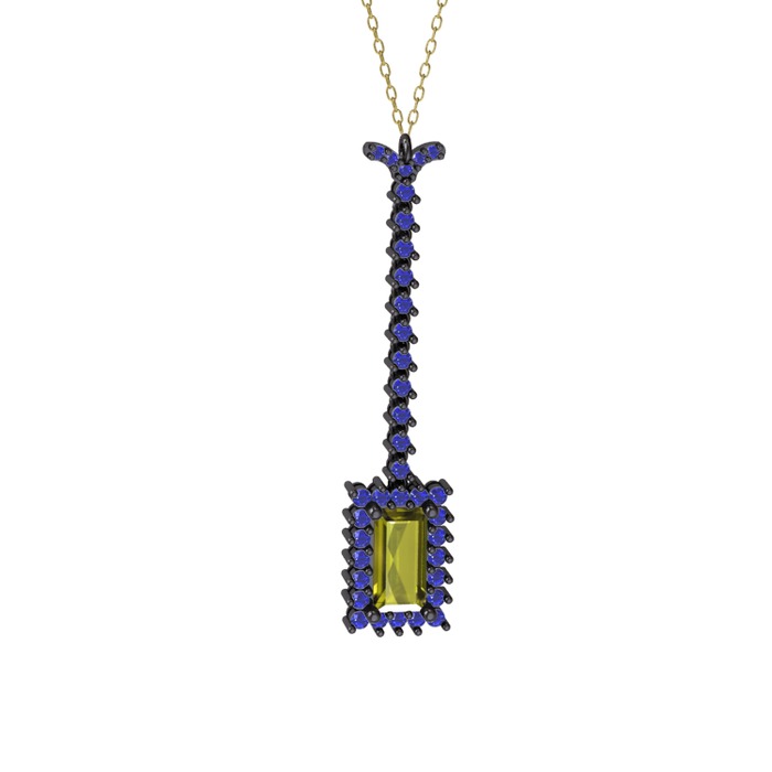 Peridot ve lab safir 925 ayar siyah rodyum kaplama gümüş kolye (40 cm altın rolo zincir)