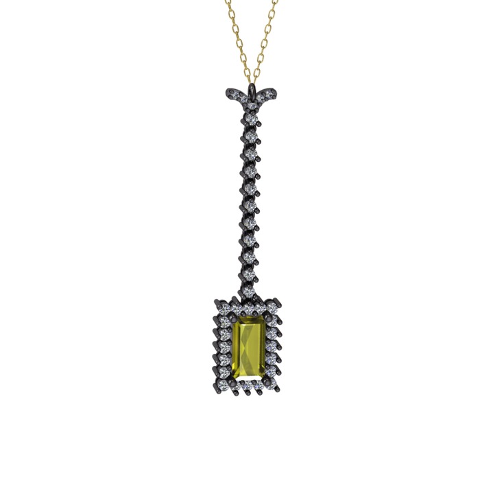 Peridot ve pırlanta 925 ayar siyah rodyum kaplama gümüş kolye (0.62 karat, 40 cm altın rolo zincir)