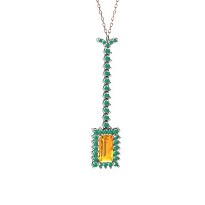 Sitrin ve kök zümrüt 14 ayar beyaz altın kolye (40 cm rose altın rolo zincir)