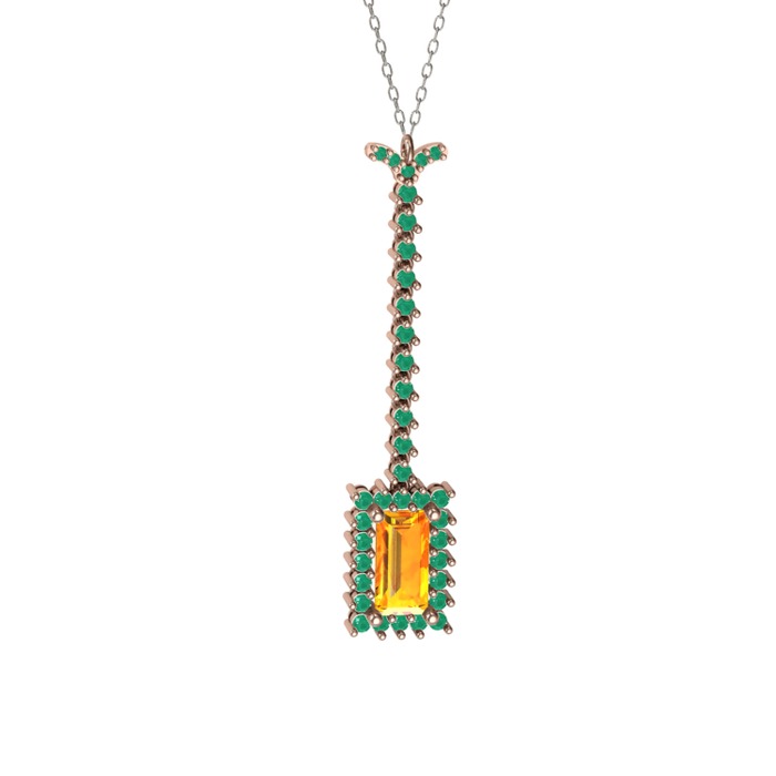 Sitrin ve kök zümrüt 14 ayar rose altın kolye (40 cm beyaz altın rolo zincir)