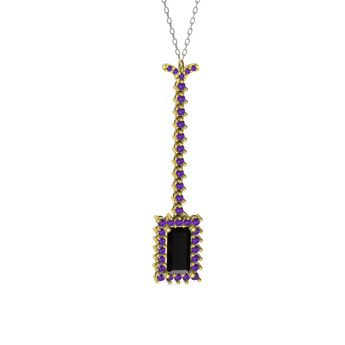 Siyah zirkon ve ametist 14 ayar altın kolye (40 cm beyaz altın rolo zincir)