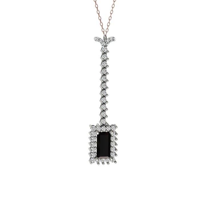 Siyah zirkon ve beyaz zirkon 925 ayar gümüş kolye (40 cm rose altın rolo zincir)