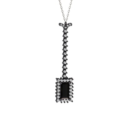 Siyah zirkon ve beyaz zirkon 925 ayar siyah rodyum kaplama gümüş kolye (40 cm gümüş rolo zincir)