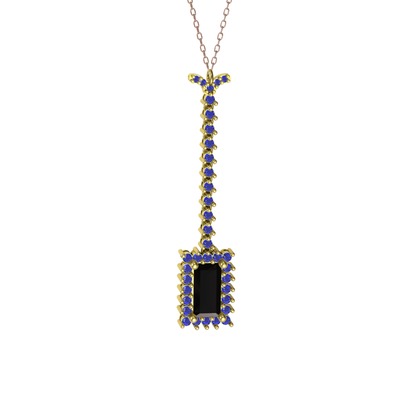 Siyah zirkon ve lab safir 18 ayar altın kolye (40 cm gümüş rolo zincir)