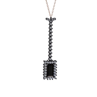 Siyah zirkon ve pırlanta 925 ayar siyah rodyum kaplama gümüş kolye (0.62 karat, 40 cm gümüş rolo zincir)