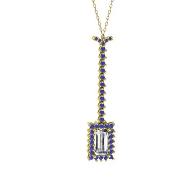 Swarovski ve lab safir 925 ayar altın kaplama gümüş kolye (40 cm altın rolo zincir)