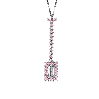 Swarovski ve pembe kuvars 18 ayar beyaz altın kolye (40 cm gümüş rolo zincir)