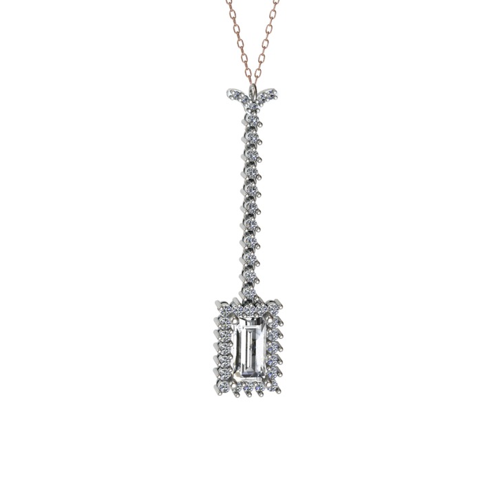 Swarovski ve pırlanta 14 ayar beyaz altın kolye (0.62 karat, 40 cm gümüş rolo zincir)