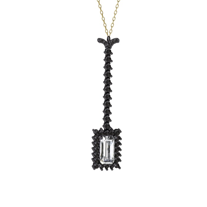 Swarovski ve siyah zirkon 925 ayar siyah rodyum kaplama gümüş kolye (40 cm altın rolo zincir)