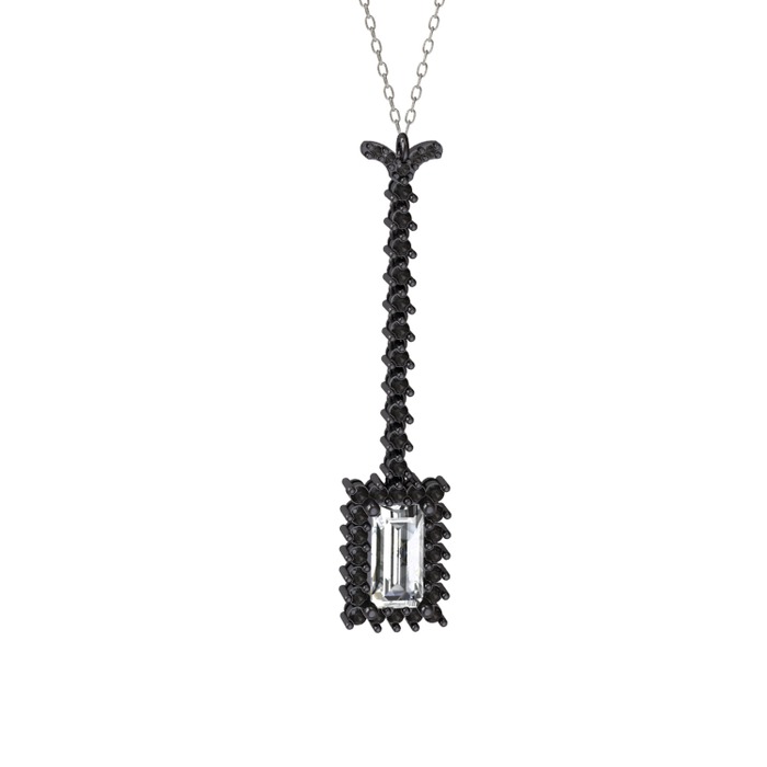 Swarovski ve siyah zirkon 925 ayar siyah rodyum kaplama gümüş kolye (40 cm gümüş rolo zincir)