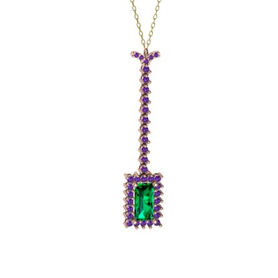 Yeşil kuvars ve ametist 14 ayar rose altın kolye (40 cm altın rolo zincir)