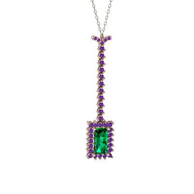 Yeşil kuvars ve ametist 14 ayar rose altın kolye (40 cm beyaz altın rolo zincir)