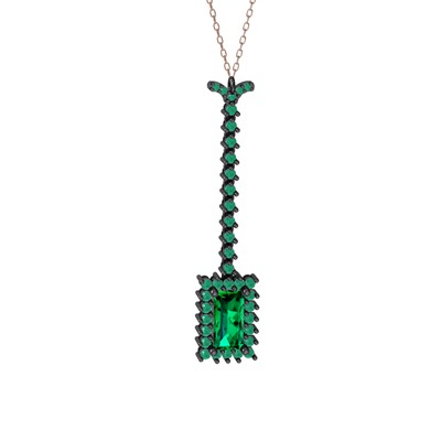 Yeşil kuvars ve kök zümrüt 925 ayar siyah rodyum kaplama gümüş kolye (40 cm rose altın rolo zincir)