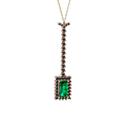 Yeşil kuvars ve siyah zirkon 18 ayar rose altın kolye (40 cm altın rolo zincir)