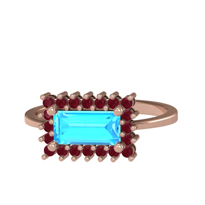Akuamarin ve kök yakut 14 ayar rose altın yüzük