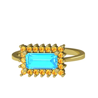 Akuamarin ve sitrin 925 ayar altın kaplama gümüş yüzük