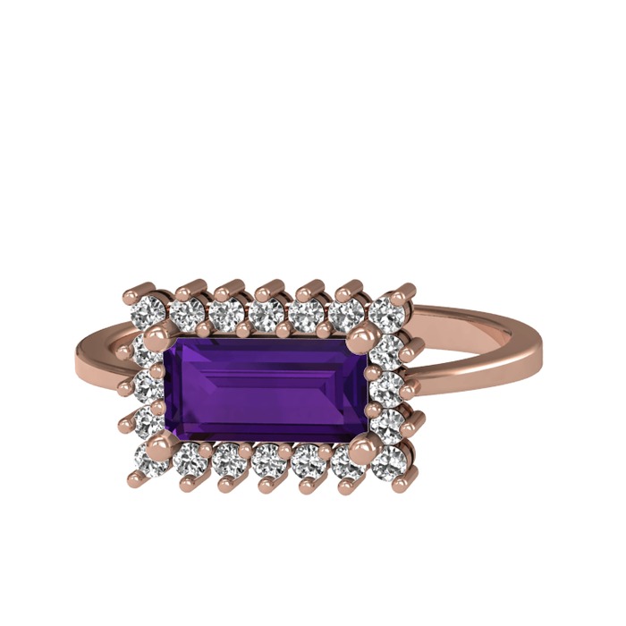 Ametist ve beyaz zirkon 18 ayar rose altın yüzük