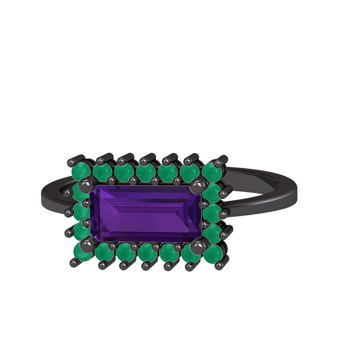 Ametist ve kök zümrüt 925 ayar siyah rodyum kaplama gümüş yüzük