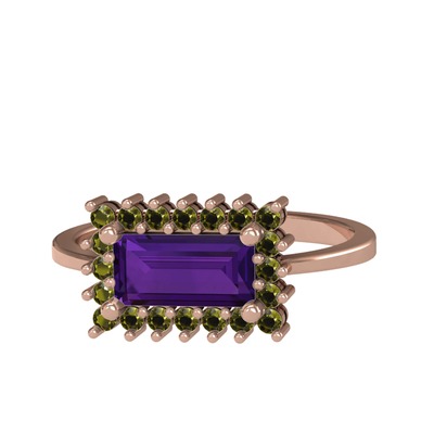 Ametist ve peridot 925 ayar rose altın kaplama gümüş yüzük