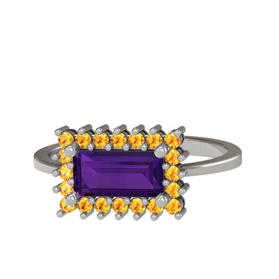 Ametist ve sitrin 14 ayar beyaz altın yüzük