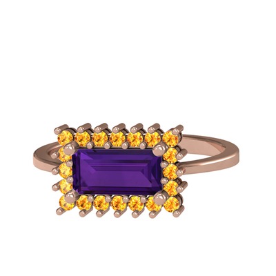 Ametist ve sitrin 18 ayar rose altın yüzük