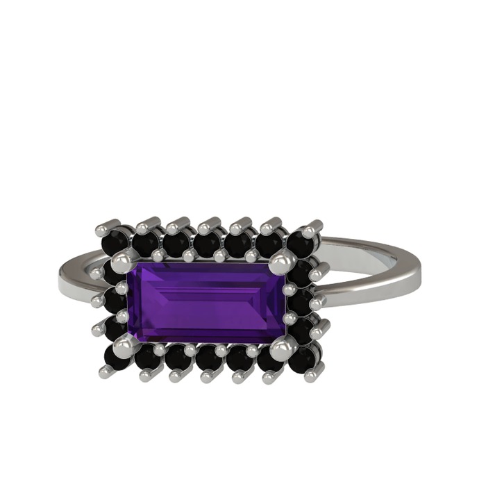 Ametist ve siyah zirkon 925 ayar gümüş yüzük