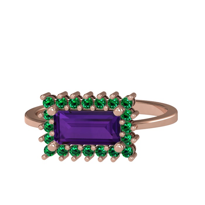 Ametist ve yeşil kuvars 8 ayar rose altın yüzük